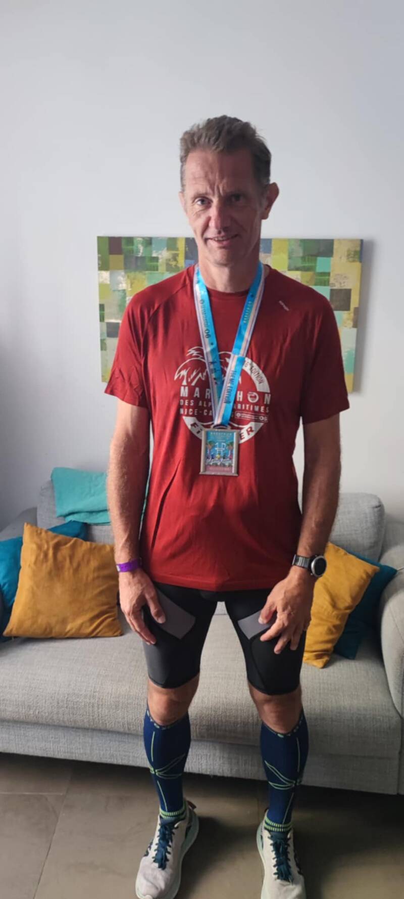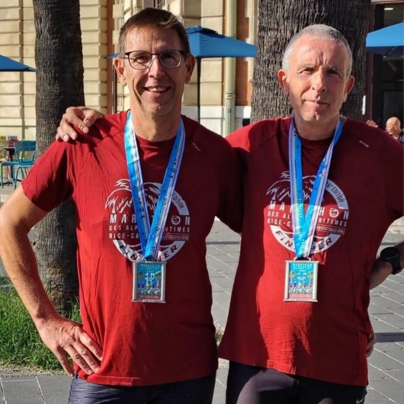 November 2023. Iemand komt met het idee op de proppen om deel te nemen aan de marathon van Nice. Een aantal personen schrijven gretig in, een vlucht en hotel worden vlotjes geboekt. Zo verlopen ook de trainingen, vlotjes. Medisch attest: check. Helaas moeten 2 personen halfweg training forfait geven wegens blessure (ik heb het over mezelf en David). Maar niet getreurd, dat worden 2 extra supporters.