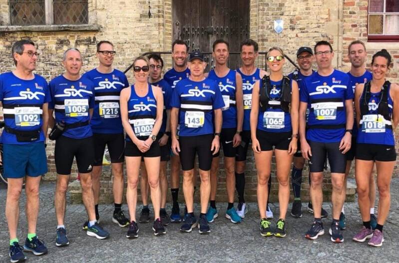 Om 11u30 hadden we afgesproken aan het sportstadion. Met meerdere auto’s reden we richting Damme, anderen gingen dan nog eens rechtstreeks. Een aantal waren nog ingeschreven van vorige editie die wegens corona niet had kunnen doorgaan. En zoals dat gaat bij de strevers werkte dit aanstekelijk zodat we uiteindelijk met een serieuze delegatie van 14 strevers aanwezig waren (12 voor de halve marathon en 2 voor de 10km).